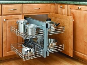 Product Description : This Non-Handed 5PSP Series maximizes space in blind corner cabinets while allowing the user full accessibility to the entire unit. The unit is easy to assemble and now installs for either left or right-handed applications. This chrome blind corner optimizer fits most 45 blind corner cabinets and features chrome accents, ball bearing slides, and heavy-duty materials making it functional, reliable and stylish. Bring organization to your fingertips, with the 5PSP Series and see how Rev-A-Shelf is changing the way you think about cabinet organization. Shipping Dimensions 26-1/4" Width, 20-1/4" Depth, 21" Height.